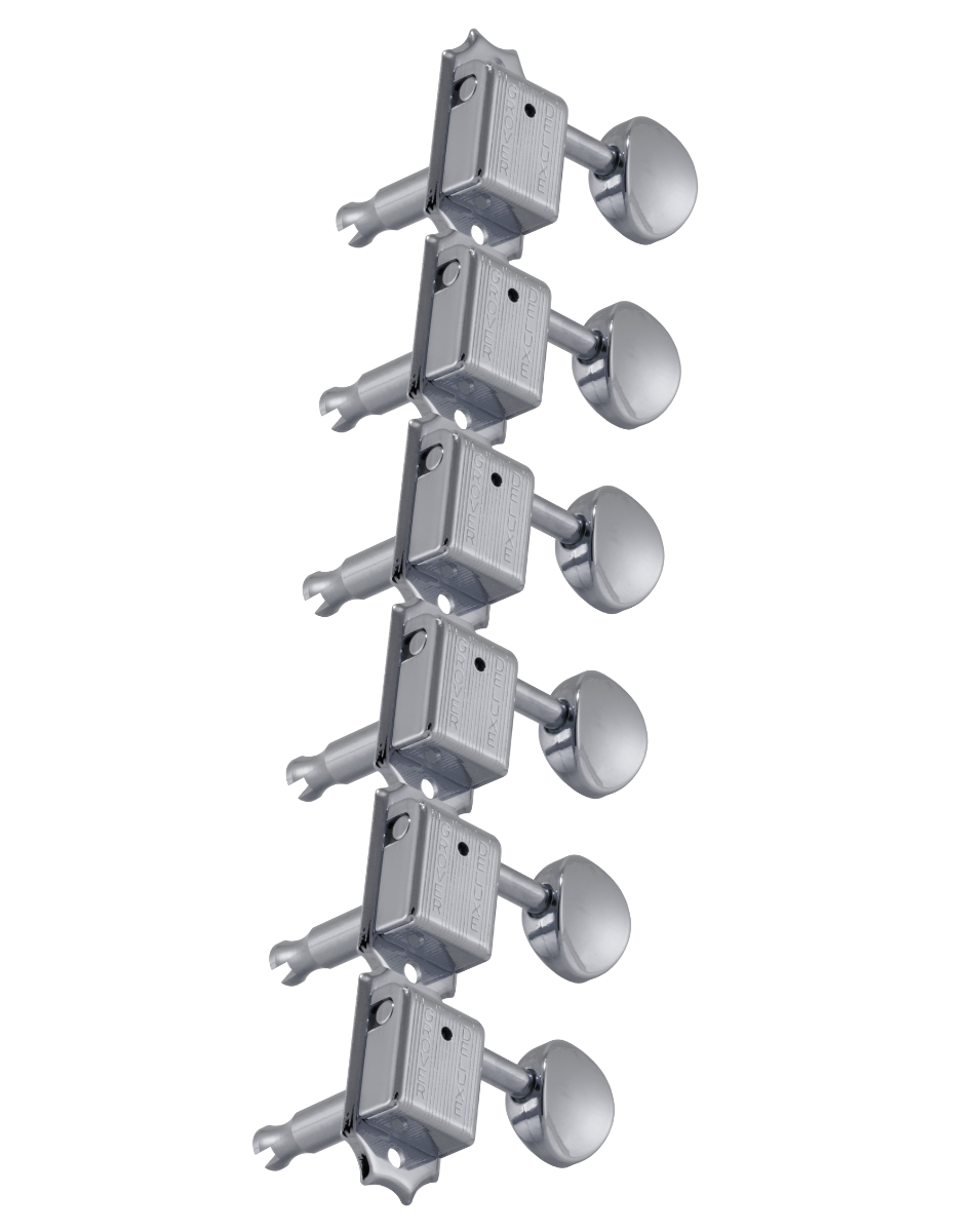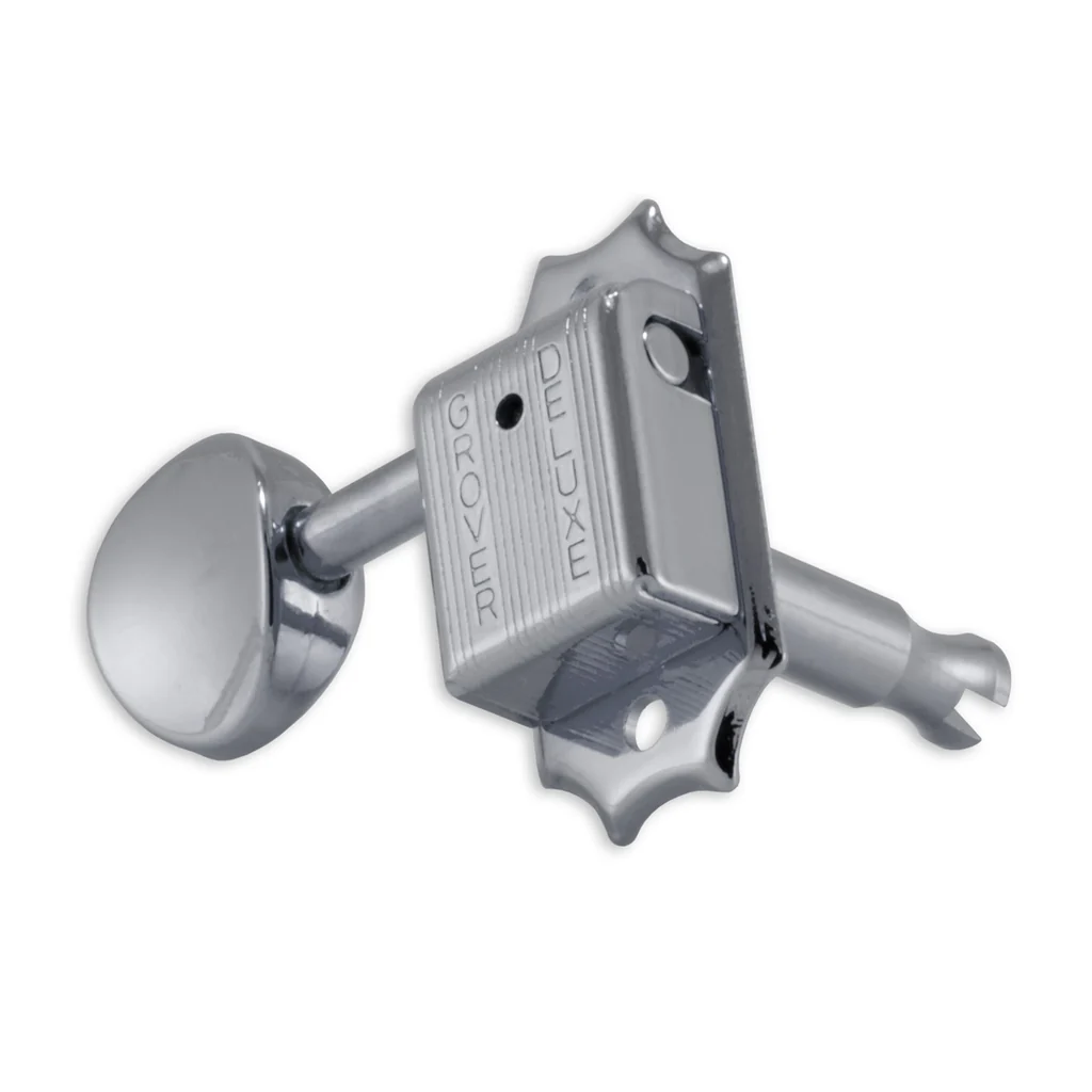 Mechanically engineered to the most precise standards of excellence, with the classic look of vintage styling, Grover Deluxe machine heads are a timeless achievement for guitar tuning. Worm and gear are cut to mesh perfectly, thereby eliminating backlash and slippage. The housings are self-lubricating for a lifetime of trouble-free service. With a 15:1 gear ratio.