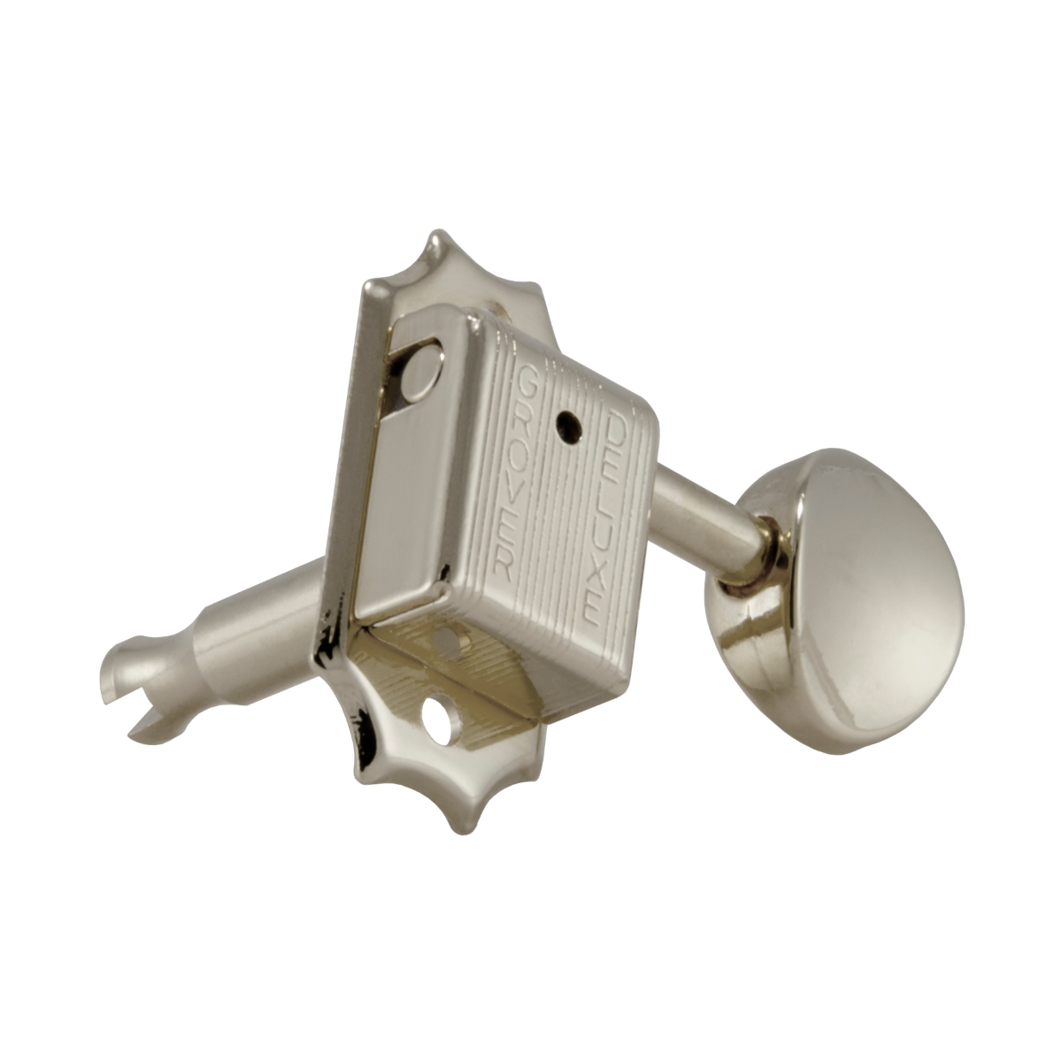 Mechanically engineered to the most precise standards of excellence, with the classic look of vintage styling, Grover Deluxe machine heads are a timeless achievement for guitar tuning. Worm and gear are cut to mesh perfectly, thereby eliminating backlash and slippage. The housings are self-lubricating for a lifetime of trouble-free service. With a 15:1 gear ratio.