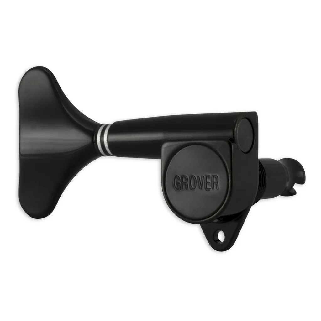 The Grover® “MINI” is lightweight, compact and durable for modern electric basses. Gear ratio is 20:1. Housing is specially machined to achieve the precise tolerance that prevents slippage and allows fine tuning. Sealed gear box has permanent lubrication that makes the MINI friction-free for life. Individually hand-tested. Screws and bushings included.