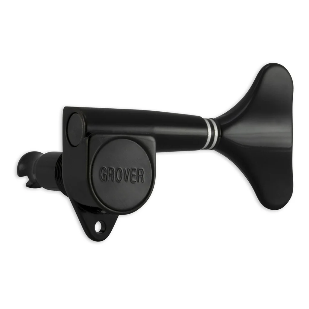 The Grover® “MINI” is lightweight, compact and durable for modern electric basses. Gear ratio is 20:1. Housing is specially machined to achieve the precise tolerance that prevents slippage and allows fine tuning. Sealed gear box has permanent lubrication that makes the MINI friction-free for life. Individually hand-tested. Screws and bushings included.