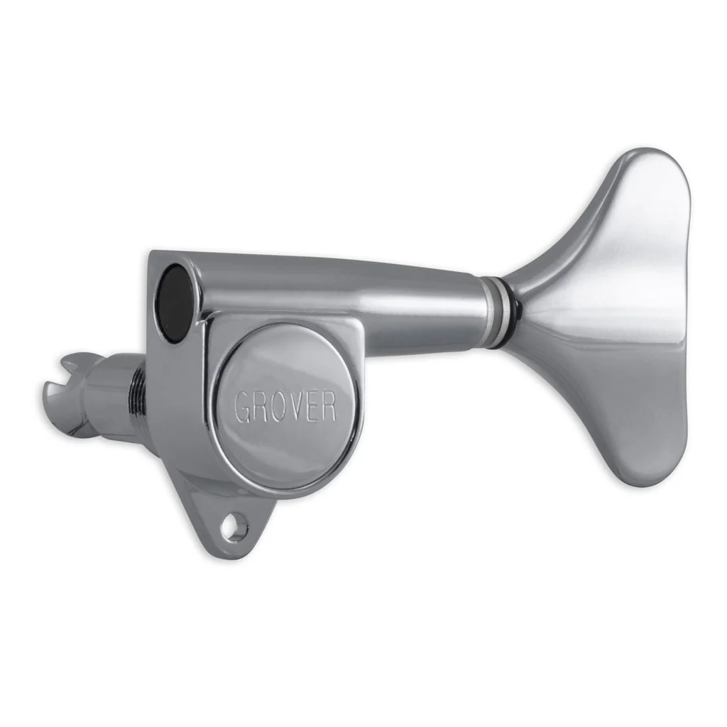 The Grover® “MINI” is lightweight, compact and durable for modern electric basses. Gear ratio is 20:1. Housing is specially machined to achieve the precise tolerance that prevents slippage and allows fine tuning. Sealed gear box has permanent lubrication that makes the MINI friction-free for life. Individually hand-tested. Screws and bushings included.