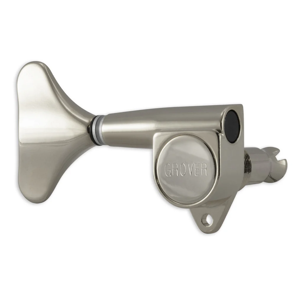 The Grover® “MINI” is lightweight, compact and durable for modern electric basses. Gear ratio is 20:1. Housing is specially machined to achieve the precise tolerance that prevents slippage and allows fine tuning. Sealed gear box has permanent lubrication that makes the MINI friction-free for life. Individually hand-tested. Screws and bushings included.