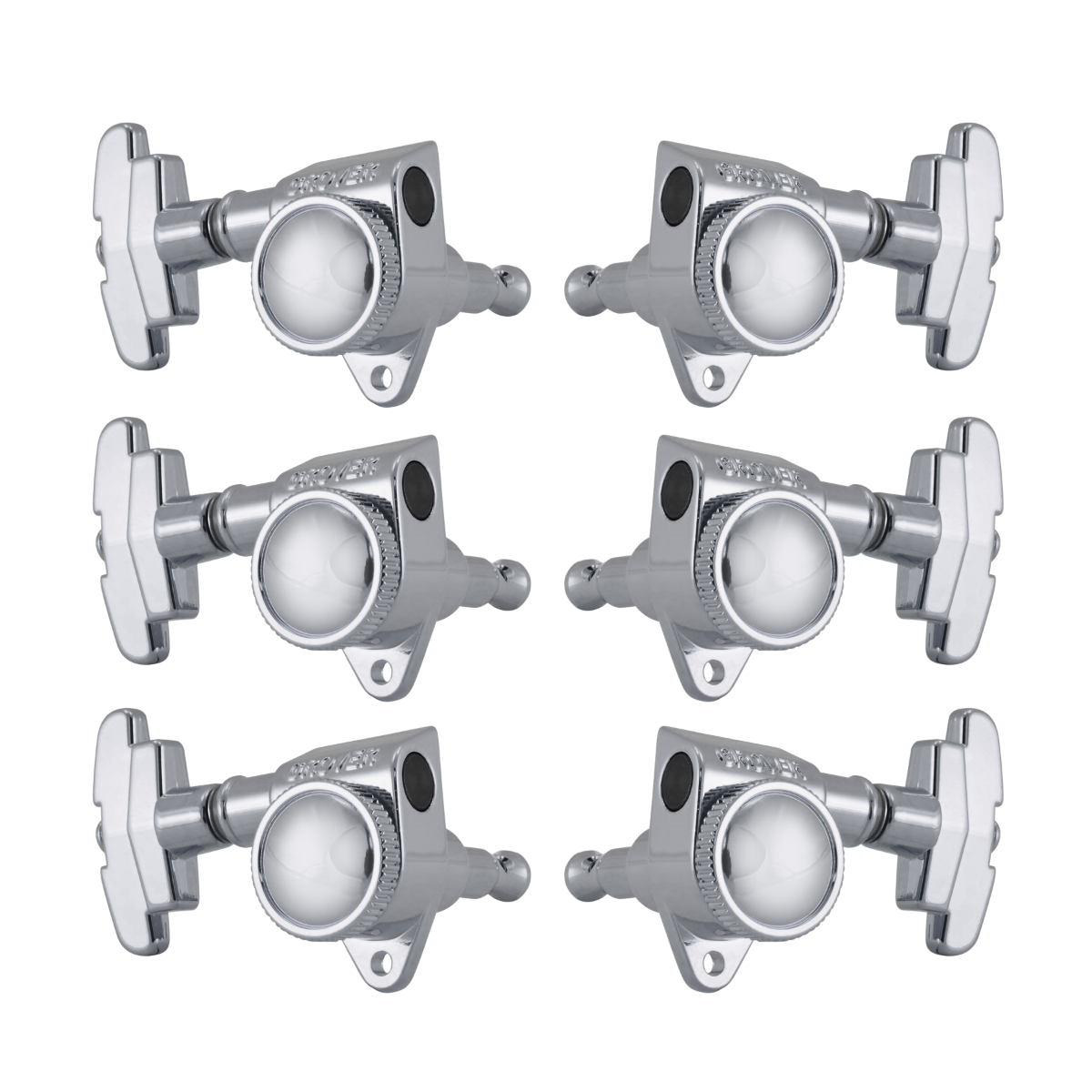 Roto-Grip Locking Rotomatics® utilize the famous 18:1 Rotomatic® design with a “thumb screw” mechanism which locks the string into place. Insert the string through the post hole, wrap around once, then lock by tightening with the thumb screw. Perfect replacement for the most standard machine heads. Includes all mounting hardware.