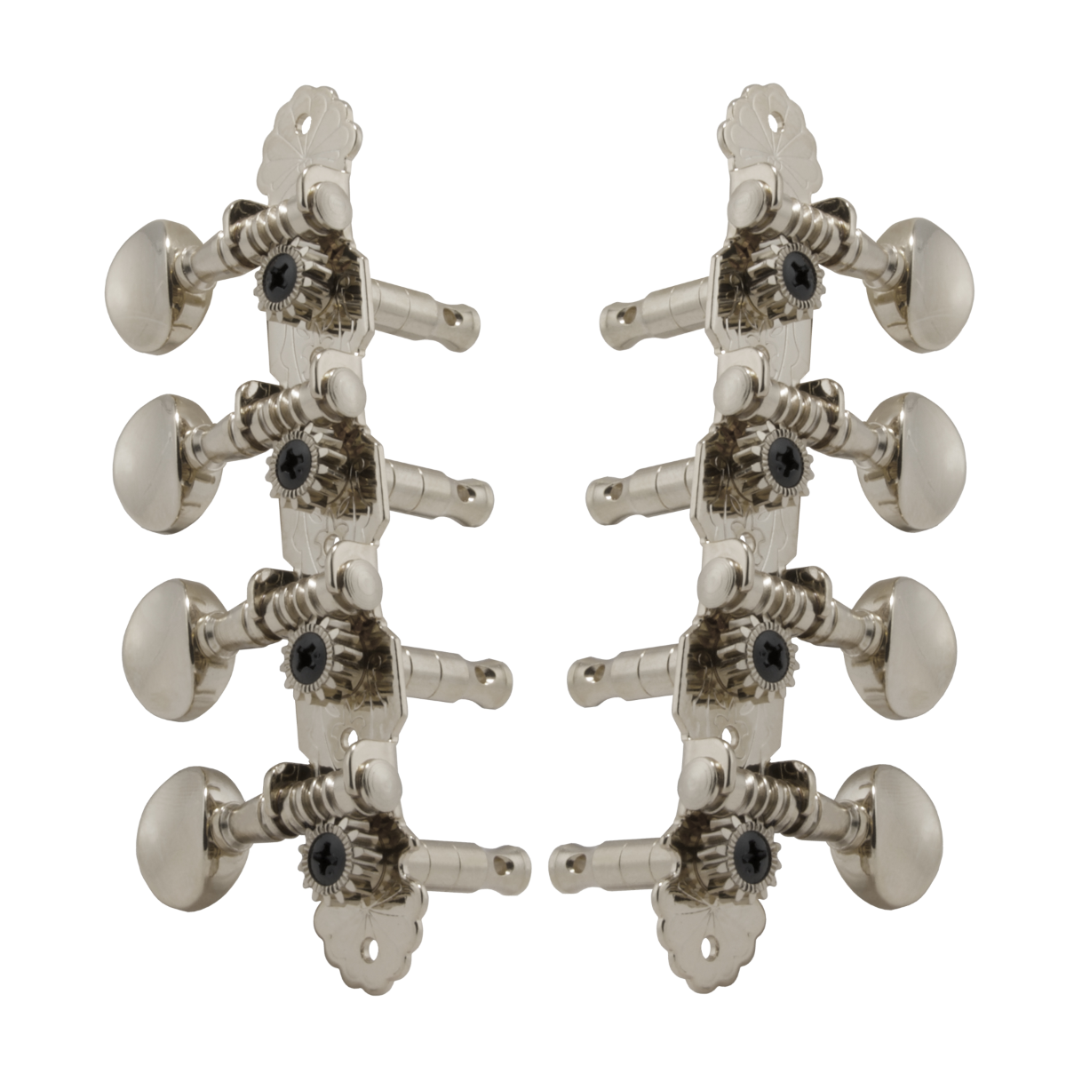 Precise engineering assures sure, smooth tuning. One piece back plates. Brass gears mean perfect meshing. Heavily plated. Screws and bushings included. With a 14:1 gear ratio.